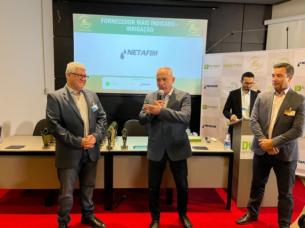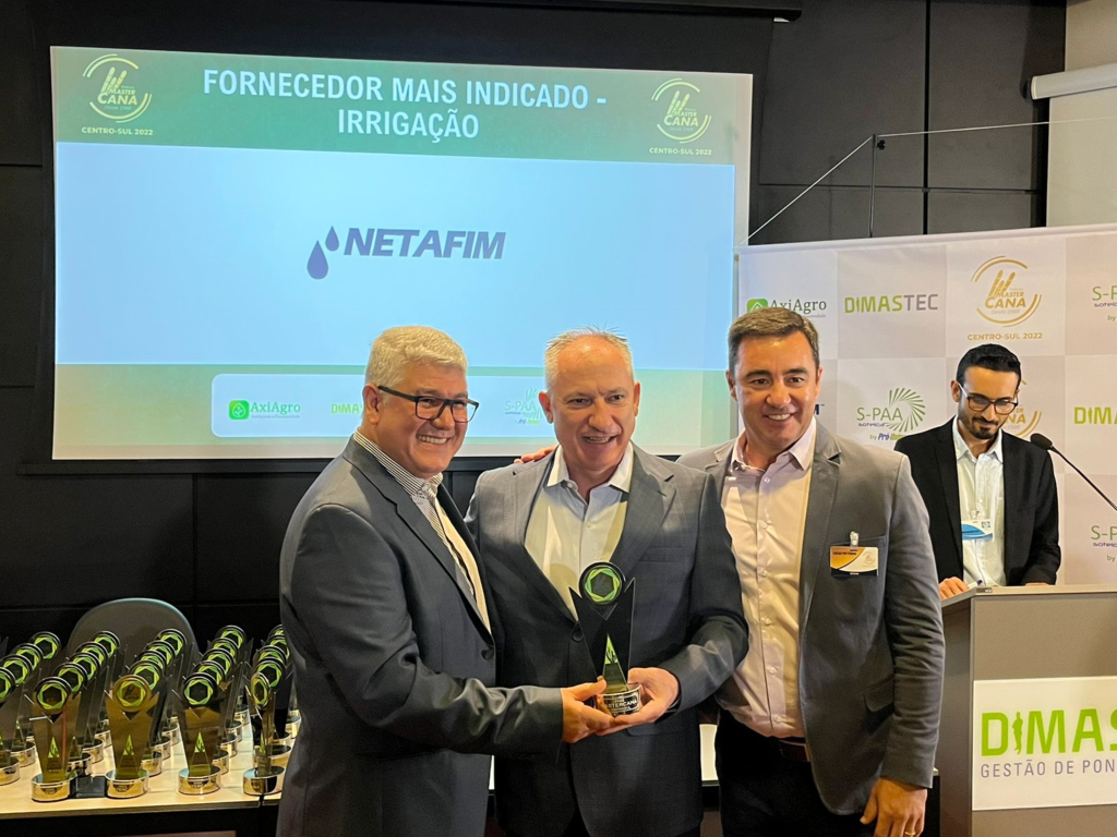A Netafim foi premiada na categoria “Fornecedores mais indicados: Irrigação” pela aplicação da tecnologia sustentável de irrigação por gotejamento subterrâneo nas principais usinas da região. A cerimônia de premiação contou com a presença do diretor Elon Svicero, do gerente de vendas Lucas Victório e toda a equipe envolvida nesta iniciativa.