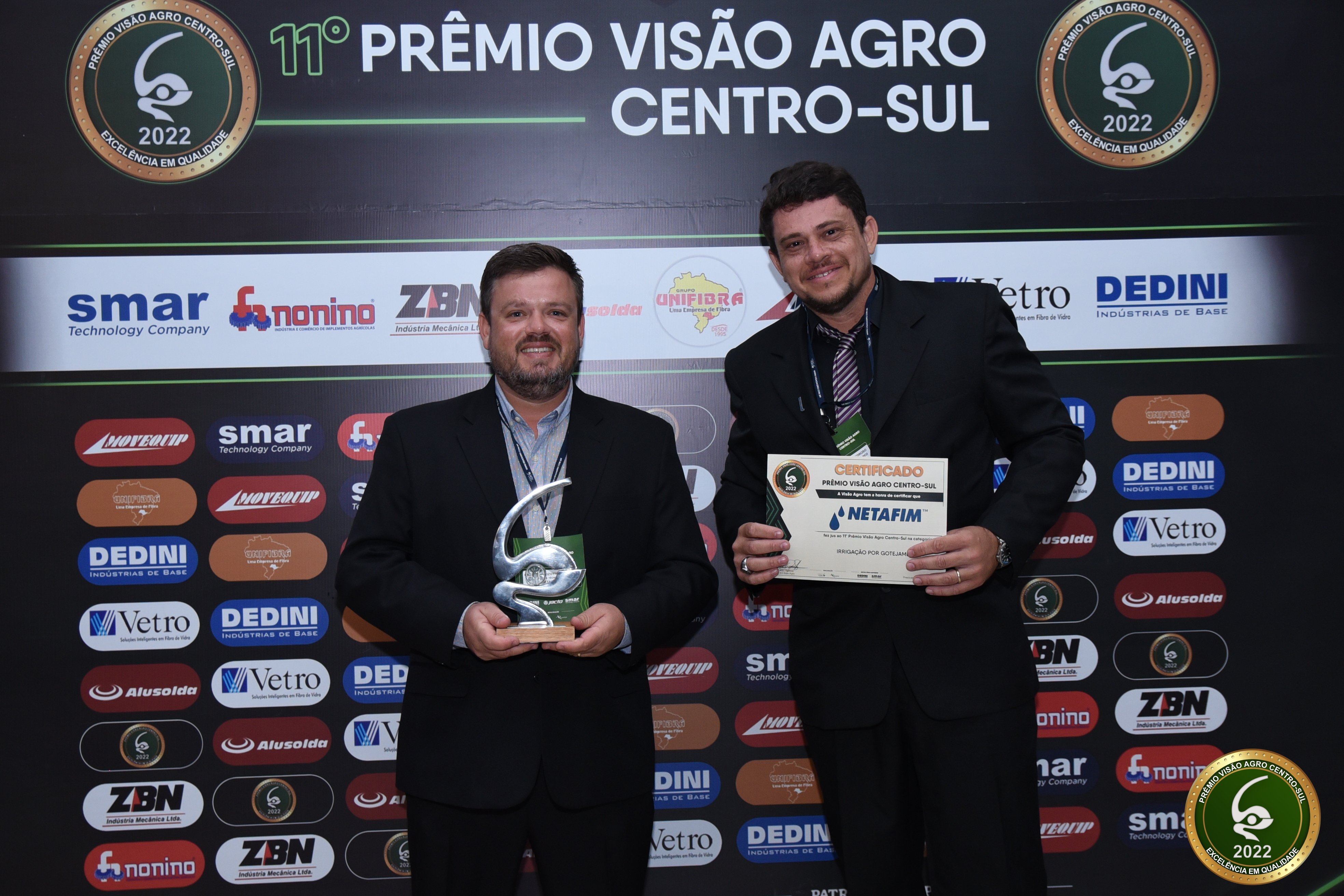 Representando a empresa durante a celebração, estiveram presentes no evento a equipe especialista em cana-de-açúcar da Netafim: Daniel Pedroso, especialista agronômico e Pericles Pelisser, representante técnico de vendas. O prêmio Visão Agro reuniu as principais empresas do setor para receber o reconhecimento pelo trabalho realizado na última safra. “Estar presente neste evento, representando a Netafim, foi uma ótima oportunidade para fazer networking e rever amigos. Gostaria de parabenizar os organizadores do prêmio Visão Agro e agradecer nossos parceiros e clientes pelo reconhecimento” disse Pelisser.