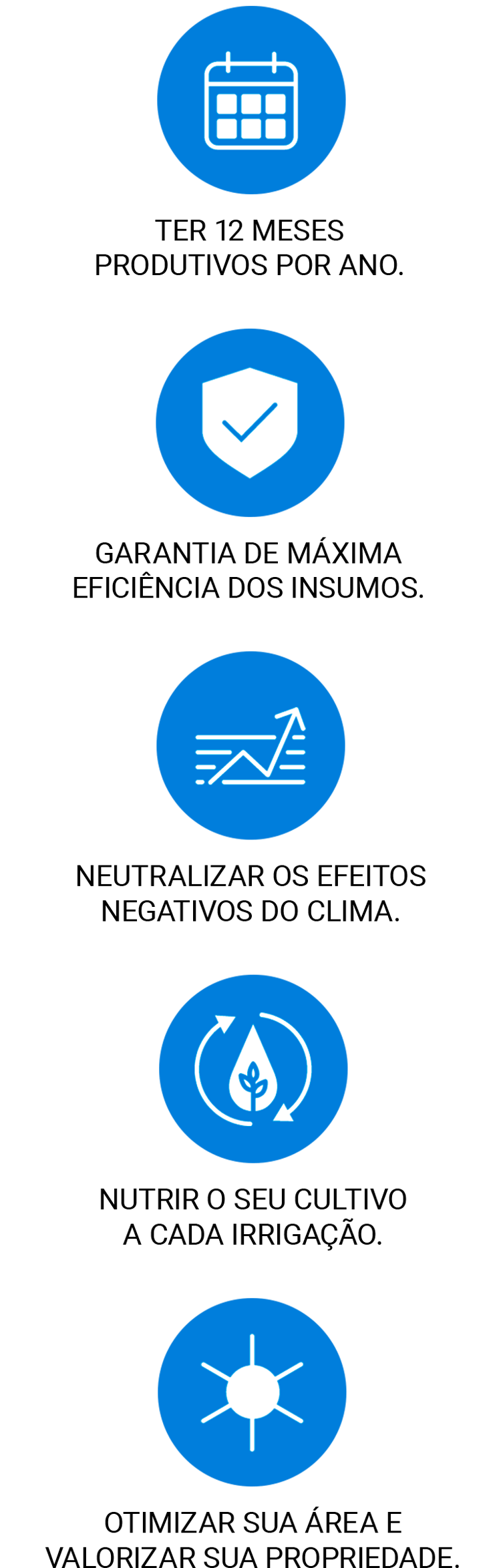Isso se traduz em diversas vantagens, como menor desperdício dos recursos, menor necessidade de maquinário e mão-de-obra (já que um único sistema entrega tudo que a planta precisa), e, claro, maior produtividade e rentabilidade.