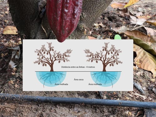 Neste contexto, a irrigação localizada (gotejamento ou microaspersão) surge como um gigante diferencial competitivo, representando uma solução eficiente tanto para ambientes convencionais como, principalmente, não tradicionais de produção de cacau.