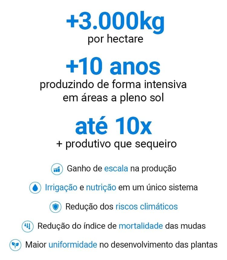 Esta precisão promove o desenvolvimento uniforme dos cacaueiros e auxilia na redução da mortalidade de mudas, aspecto relevante para culturas com alto investimento.